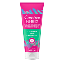 Каждый день вы будете ощущать чистоту и свежесть с гелем для ежедневной интимной гигиены Carefree® Duo Effect с зеленым чаем и алоэ вера.