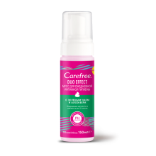 Carefree® Duo Effect Мусс для ежедневной интимной гигиены с зеленым чаем и алоэ вера натурального происхождения имеет легкую текстуру и разработан специально для деликатного ухода за кожей интимной зоны.