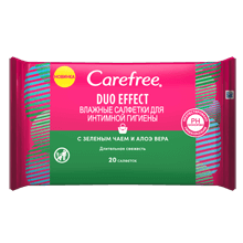 Carefree® Duo Effect Влажные салфетки для интимной гигиены с зеленым чаем и алоэ вера натурального происхождения мягко очищают и мгновенно придают длительное ощущение свежести в любое время, когда это необходимо.